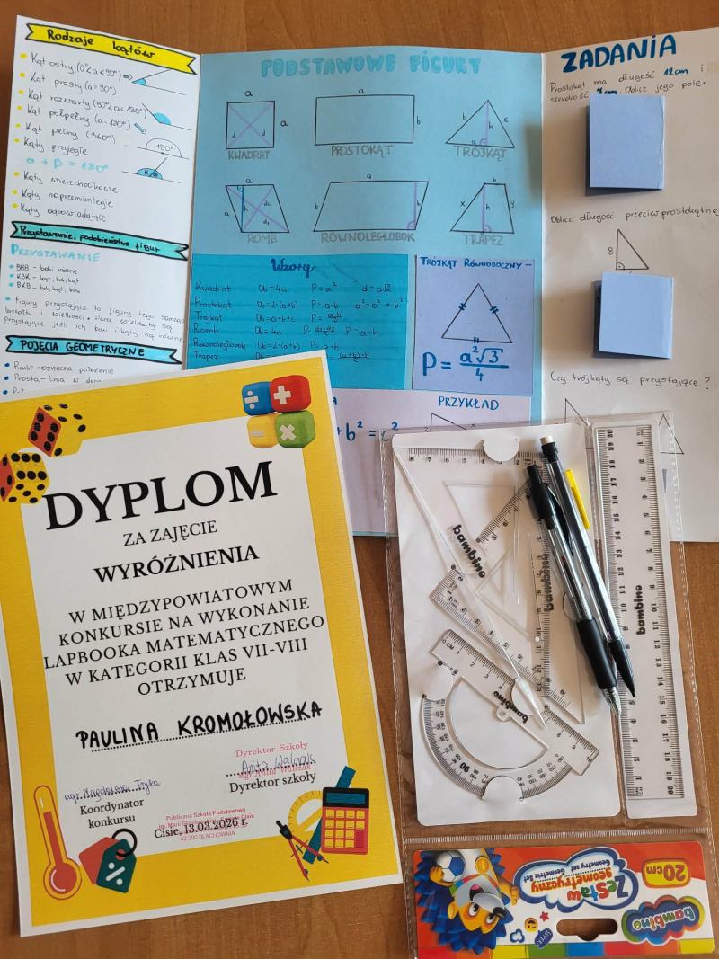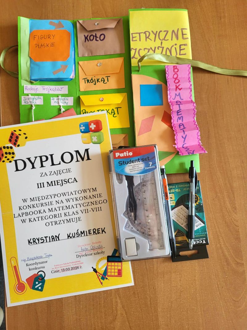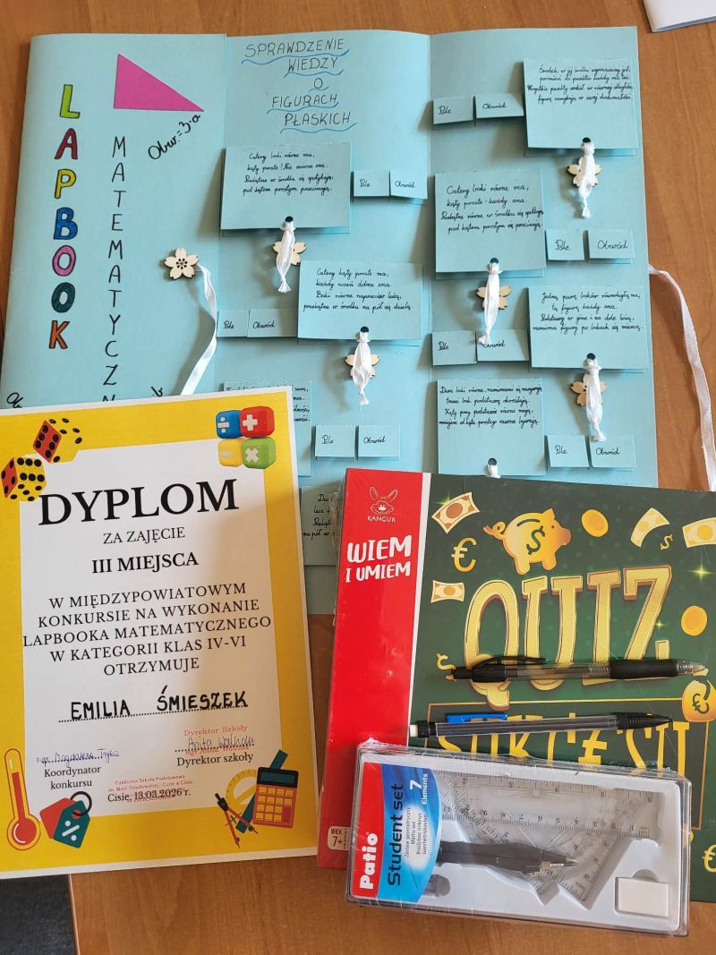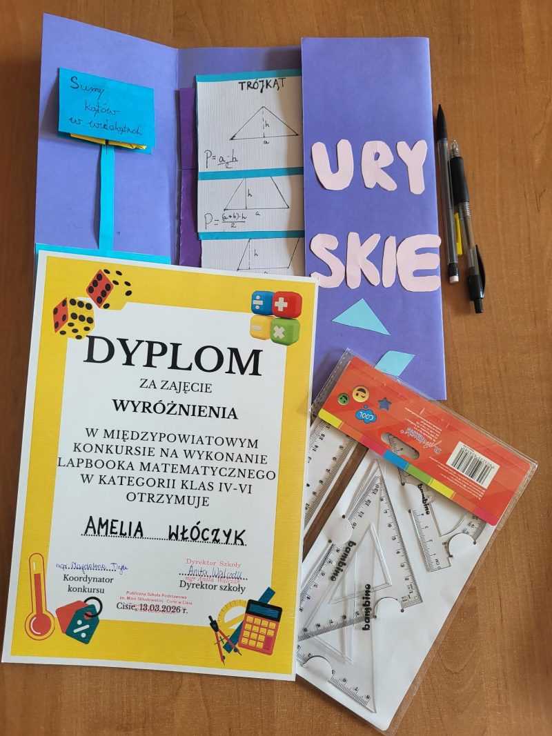 W naszej szkole odbył się Międzypowiatowy Konkurs na „Lapbooka Matematycznego”, którego koordynatorem była Pani Magdalena Tryka nauczycielka matematyki.