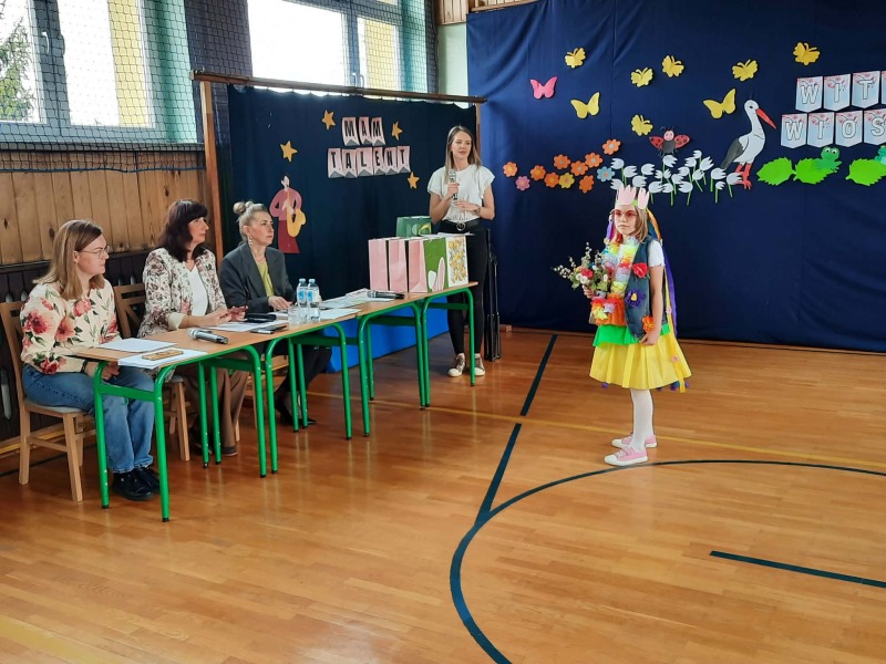 Podziwialiśmy Panie Wiosny, piękne ozdoby wiosenne ale głównym punktem programu był konkurs Mam Talent w którym zaprezentowali się uczniowie obdarzeni różnymi talentami. Widownia była pod wrażeniem każdego z występujących uczestników, a jury miało bardzo trudne zadanie, by wyróżnić najlepszych.