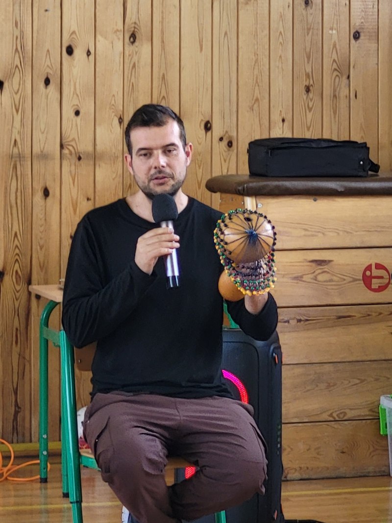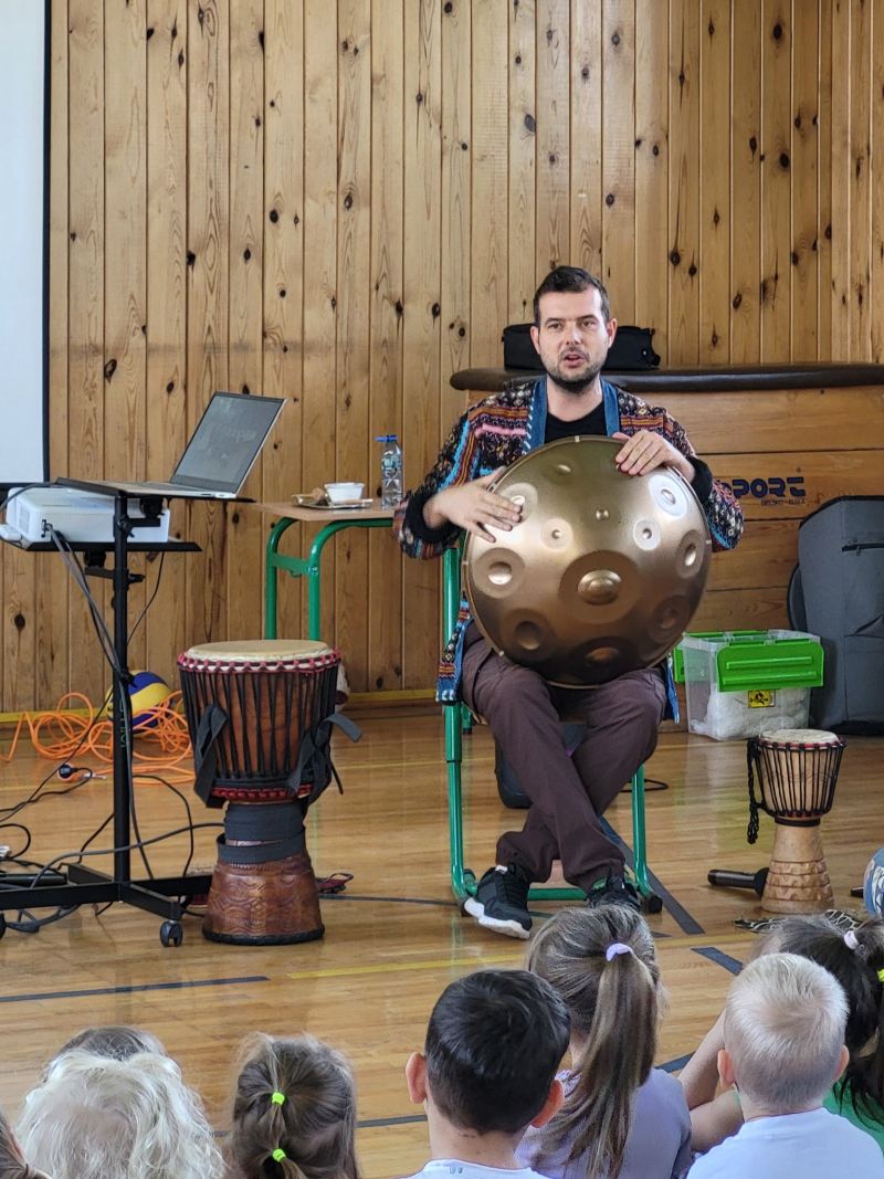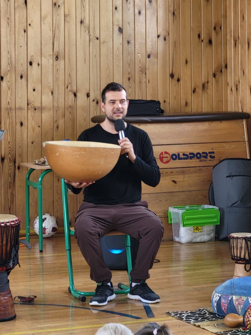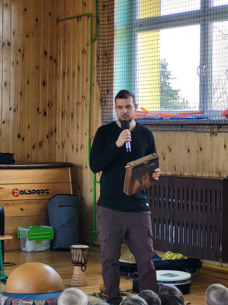 Podczas spotkania uczniowie mogli zobaczyć m.in.: tykwę, djembe, ilimbę, niezwykły handpan, ocean drum oraz inne ciekawe instrumenty. Prowadzący zaprezentował ich brzmienie, opowiedział o sposobie powstawania oraz o tym, w jakich sytuacjach są wykorzystywane w kulturze afrykańskiej.