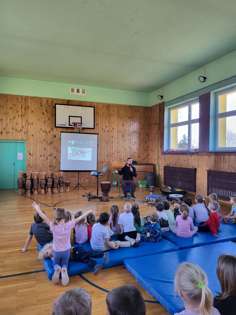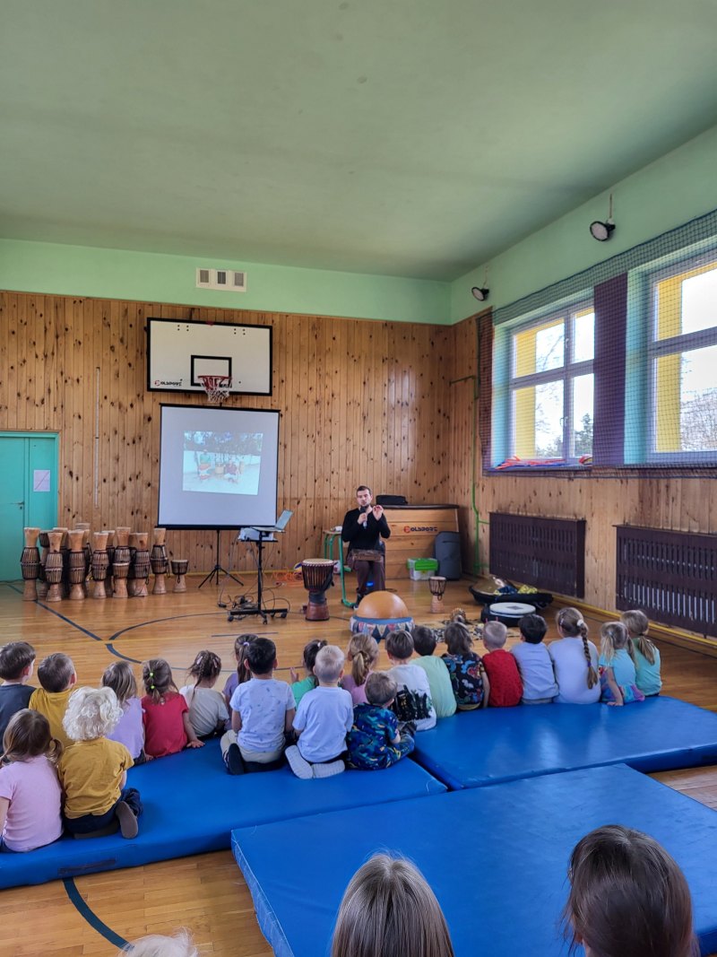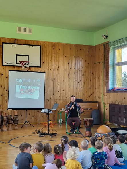 Do naszej szkoły zawitał niezwykły gość Pan Łukasz Dembiński, który przeniósł uczniów w świat afrykańskiej muzyki, rytmu i tradycji.