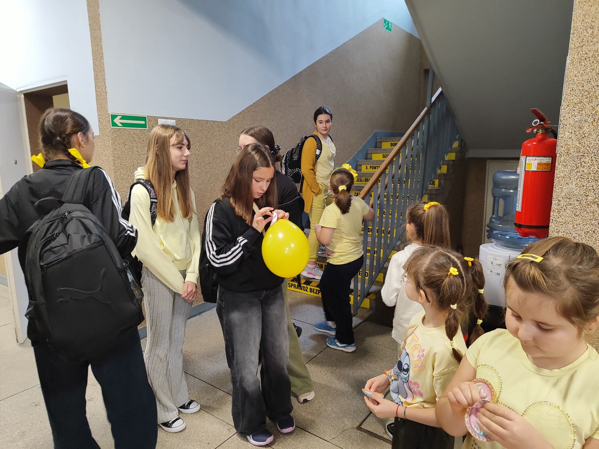 21 listopada jak co roku obchodziliśmy w naszej szkole Światowy Dzień Życzliwości i Pozdrowień. Samorząd Szkolny przygotował specjalną skrzynkę, do której można było wrzucać kartki z miłymi wiadomościami do kolegów, koleżanek i nauczycieli. Uczniowie, którzy przyszli w tym dniu ubrani na żółto zostali zwolnieni z pytania. Wszyscy uczniowie otrzymali też specjalne plakietki.